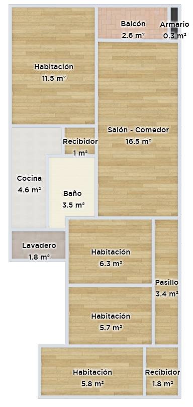 Este piso de compone de 4 habitaciones, 1 doble exterior y muy luminosa y 3 individuales, pudiendo convertir el piso con solo tirar un tabique en 2 dobles y 1 individual.
