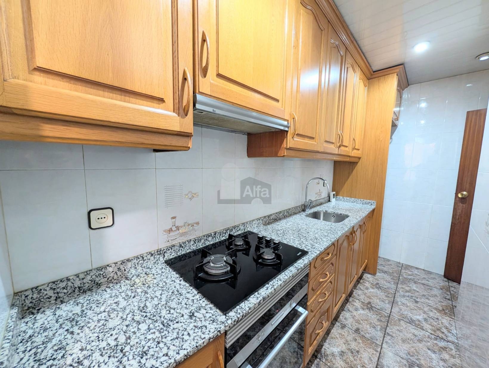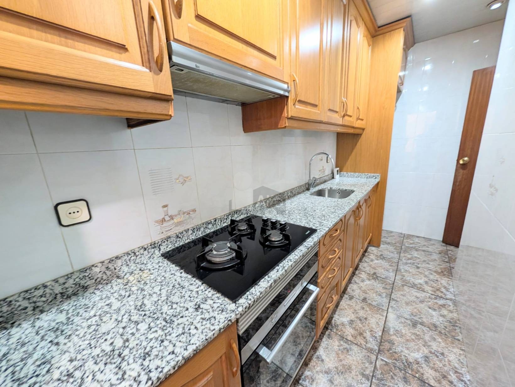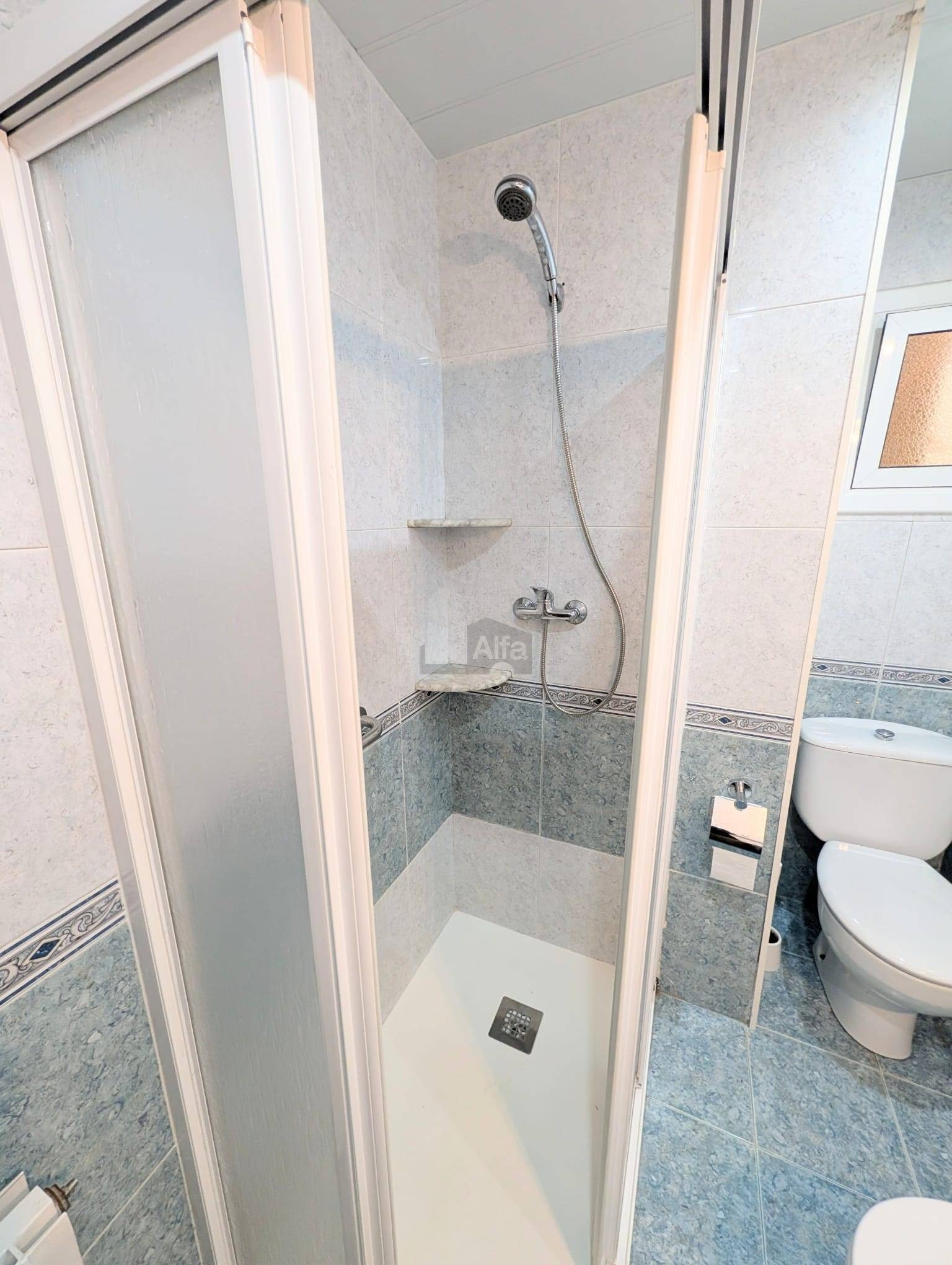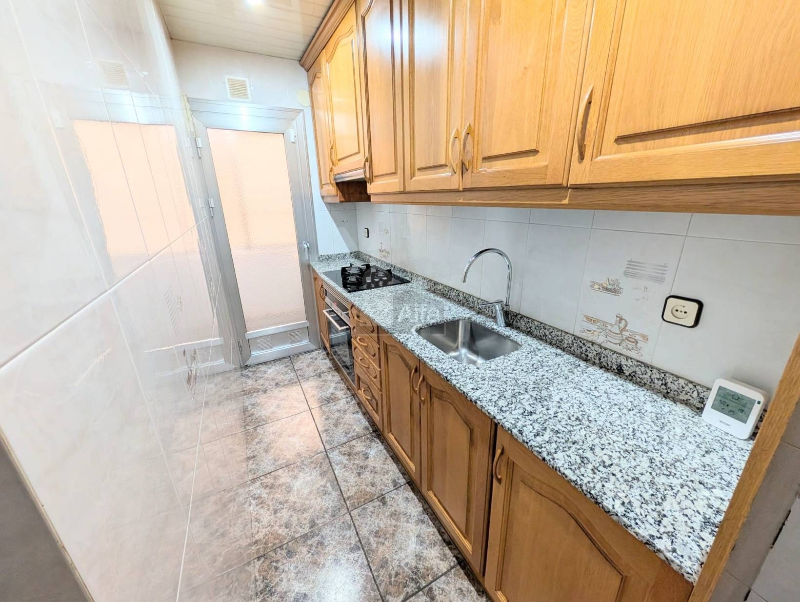 Baño reformado completo con plato de ducha y mampara, cocina independiente con lavadero y gran salón-comedor de 16,50 m2 con salida a balcón.